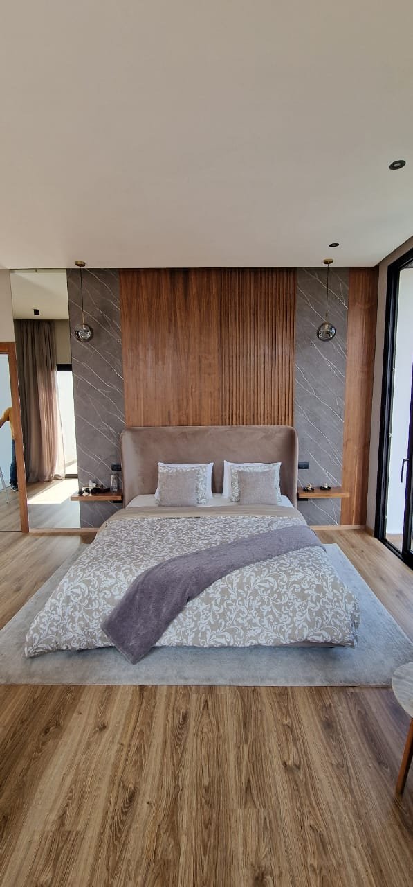 Plus qu’un simple lieu de repos, cette chambre incarne l’harmonie entre chaleur du bois et modernité des lignes. Chaque détail – des panneaux rainurés au mobilier intégré – a été pensé pour créer une atmosphère apaisante et sophistiquée.