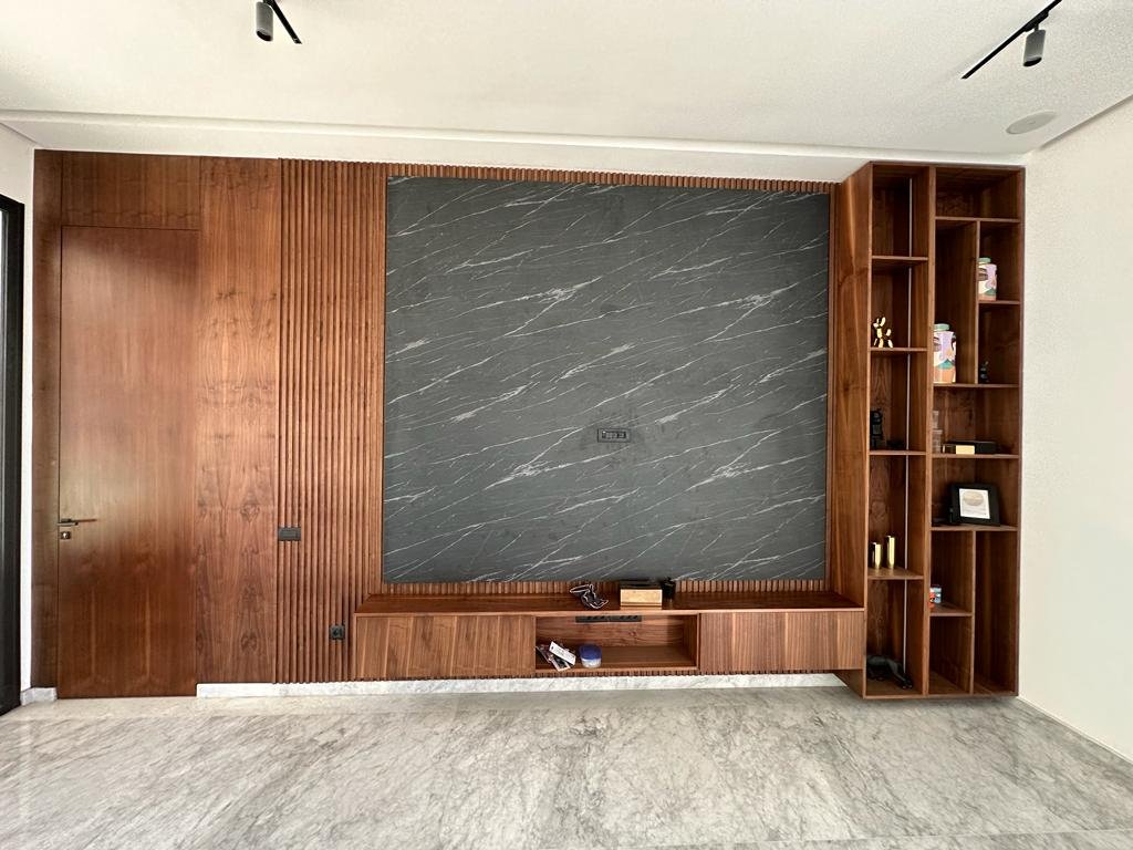 Mur TV & Bibliothèque – Design Fonctionnel
