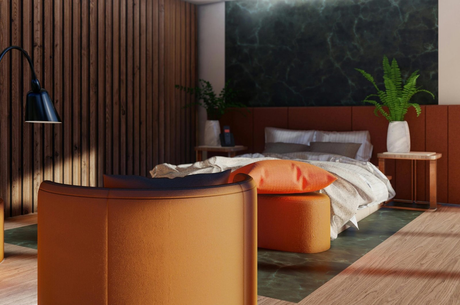 Natural textures, such as wood, stone, and woven materials, combined with rich, deep blue tones, create a harmonious flow that seamlessly connects the various spaces throughout the home. This thoughtful combination not only enhances visual continuity but also evokes a sense of calm and cohesion, making each room feel like an intentional extension of the next.